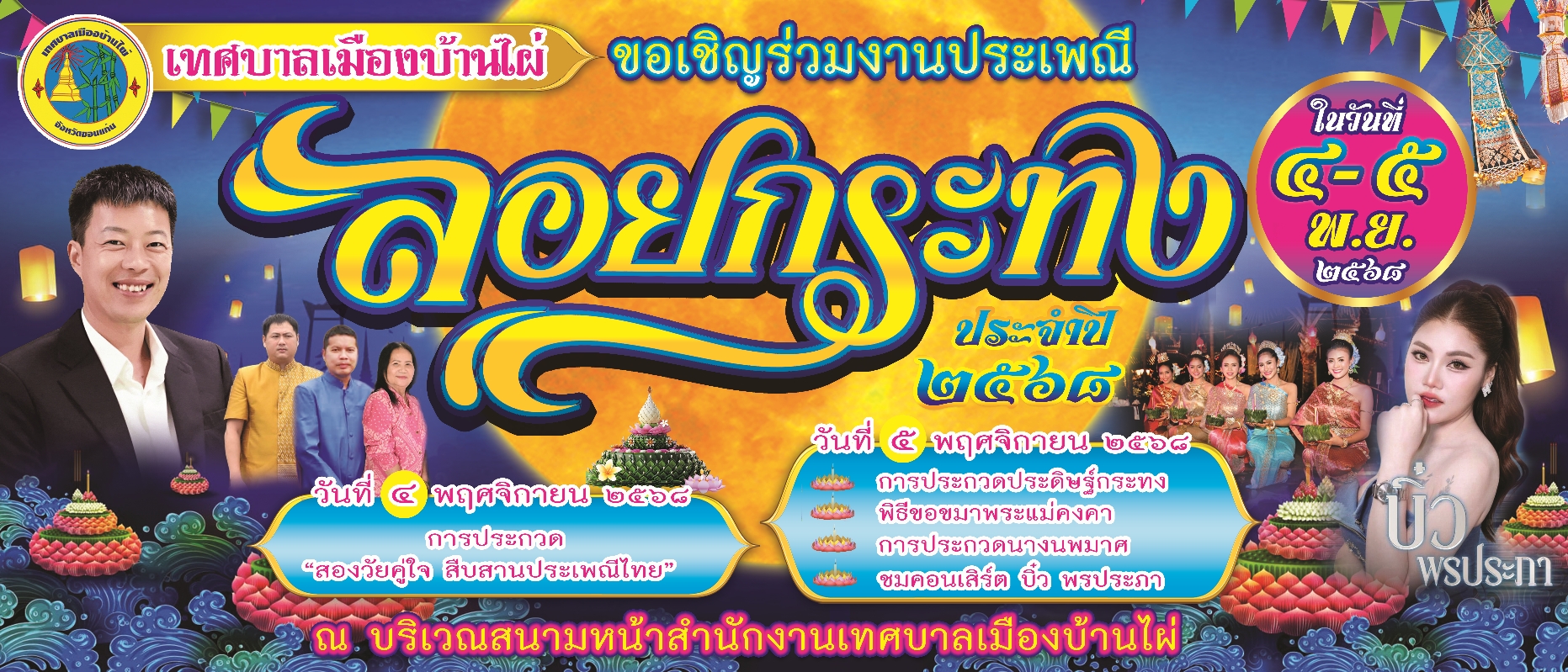 เทศบาลเมืองบ้านไผ่ข้อมูลข่าวสารประชาสัมพันธ์ขอเชิญพ่อแม่พี่น้องชาวอำเภอบ้านไผ่ เที่ยวชมงาน สืบสานประเพณีลอยกระทง ประจำปี 2568