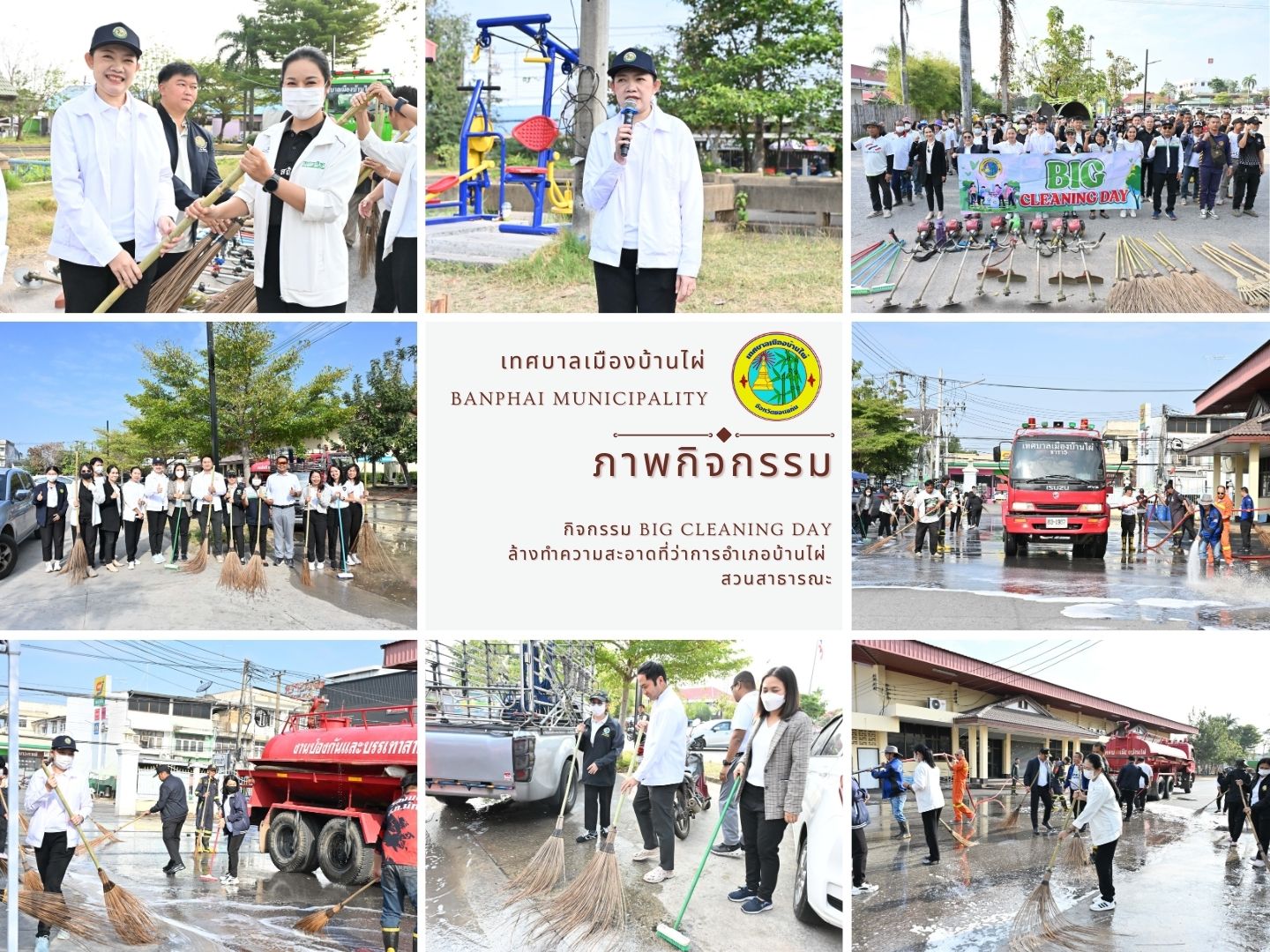 วันที่ 21 มกราคม 2569 นายศรัญ กสิกิจวรกุล นายกเทศมนตรีเมืองบ้านไผ่ มอบหมายให้นางสุกัญญา จันทร์ภักดี รองปลัดเทศบาล กล่าวเปิดกิจกรรม Big Cleaning Day ล้างทำความสะอาดที่ว่าการอำเภอบ้านไผ่ สวนสาธารณะ โดยมีนายกฤติธี ปิยพรมดี คณะทำงานนายกเทศมนตรีเมืองบ้านไผ่ รองปลัดเทศบาล หัวหน้าส่วนราชการ และพนักงานเทศบาล ร่วมกิจกรรมในครั้งนี้ ณ หน้าที่ว่าการอำเภอบ้านไผ่