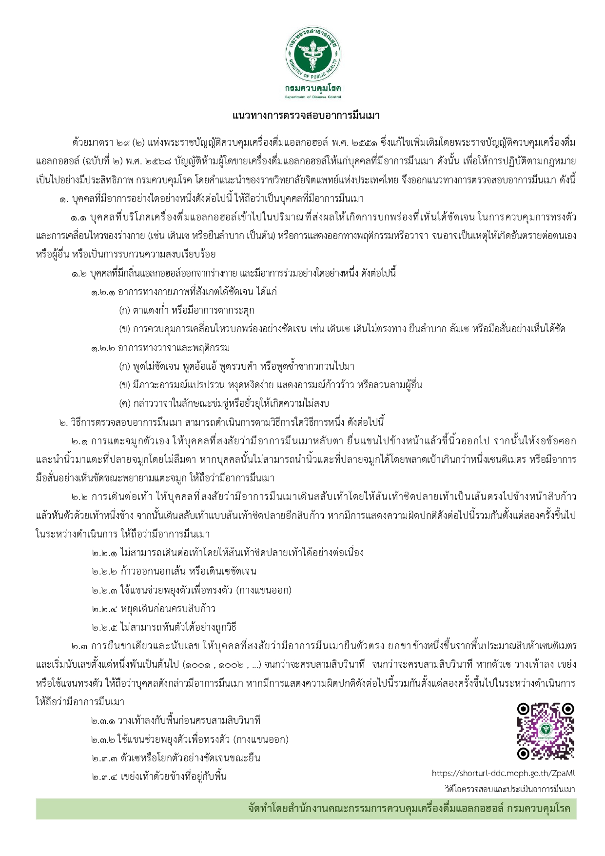ประชาสัมพันธ์แนวทางการตรวจสอบอาการมึนเมา เพื่อให้ผู้ขายเครื่องดื่มแอลกอฮอล์ใช้ตรวจสอบอาการมึนเมาของบุคคลเท่าที่จำเป็นและสมควร ????????สอบถามรายละเอียดเพิ่มเติมได้ที่ สำนักงานคณะกรรมการควบคุมเครื่องดื่มแอลกอฮอลล์ หมายเลขโทรศัพท์ 02 2590 3032