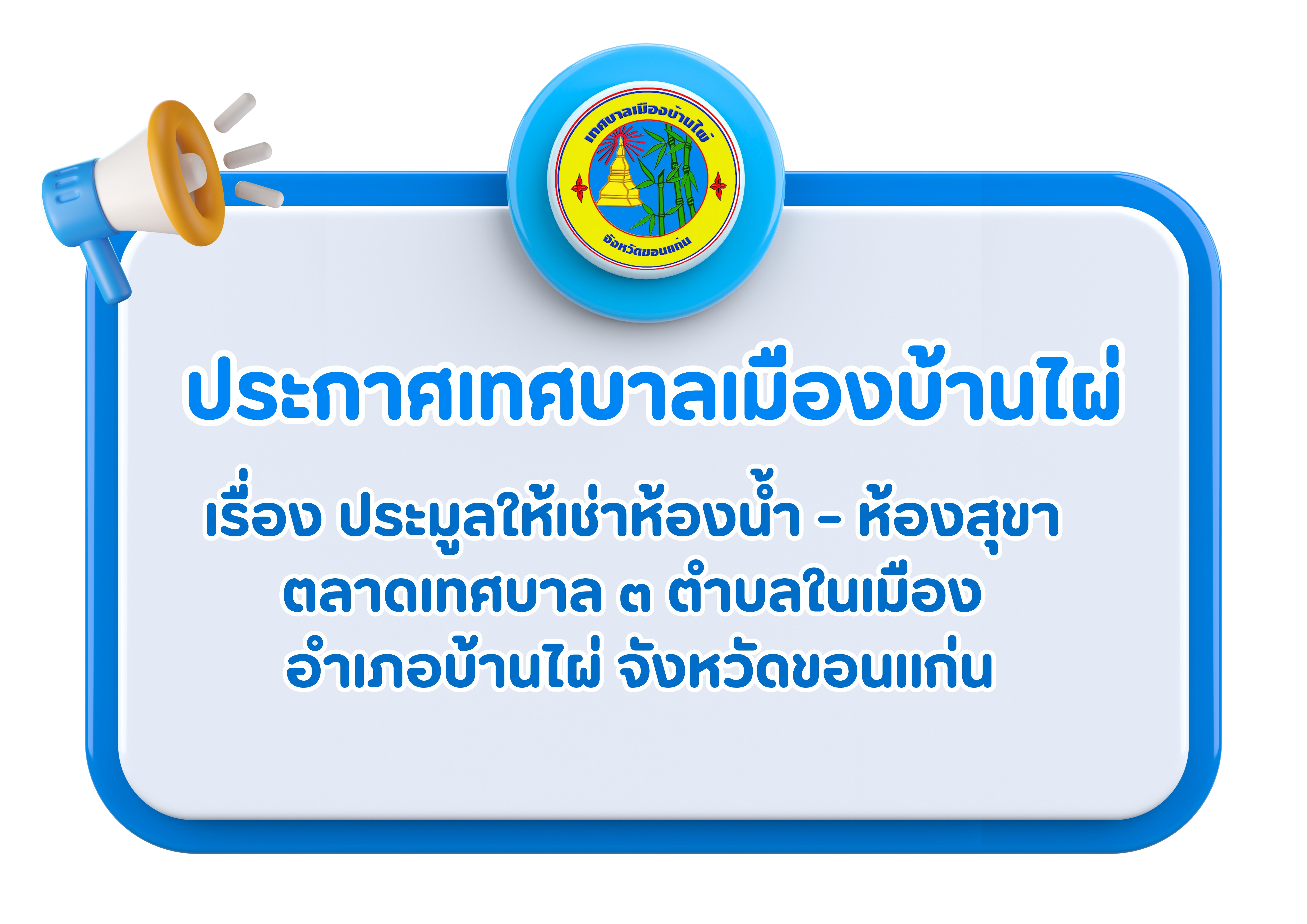 เรื่อง ประมูลให้เช่าห้องน้ำ - ห้องสุขา ตลาดเทศบาล ๓ ตำบลในเมือง อำเภอบ้านไผ่ จังหวัดขอนแก่น
